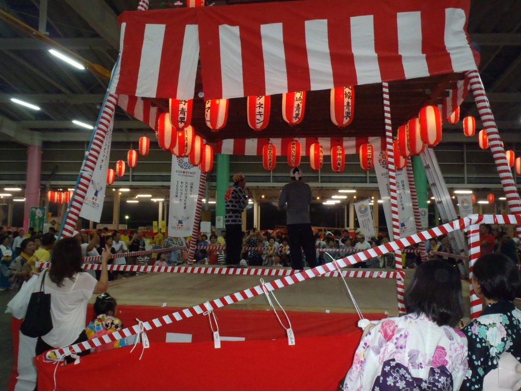 櫓の上に登って一曲歌って盛り上がる。