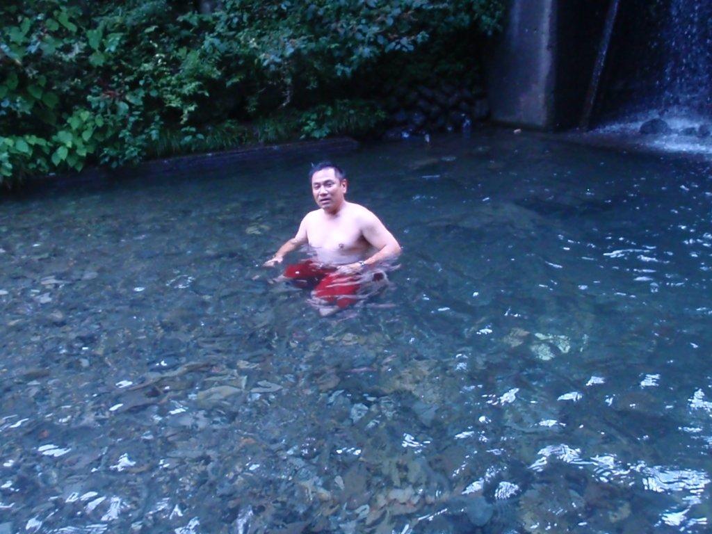 横を流れる川に浸かる。