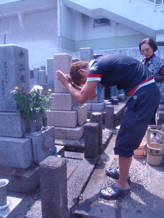 炎天下トニーと二人で墓をゴシゴシゴシゴシ。