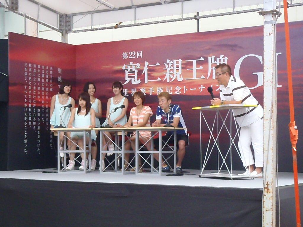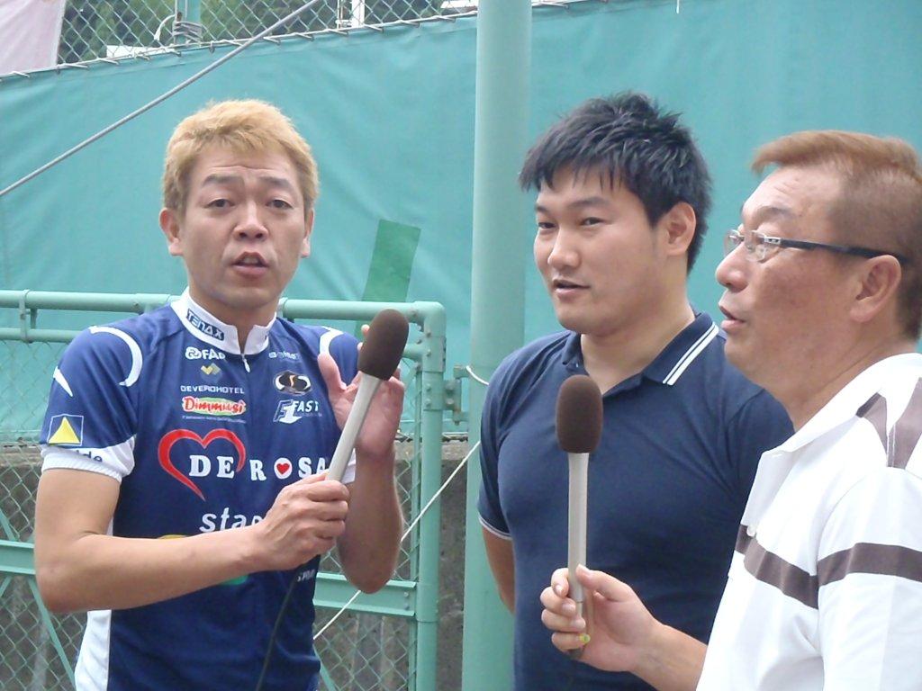 検車場前で中野さんと初日理事長杯出場の9選手インタビュー